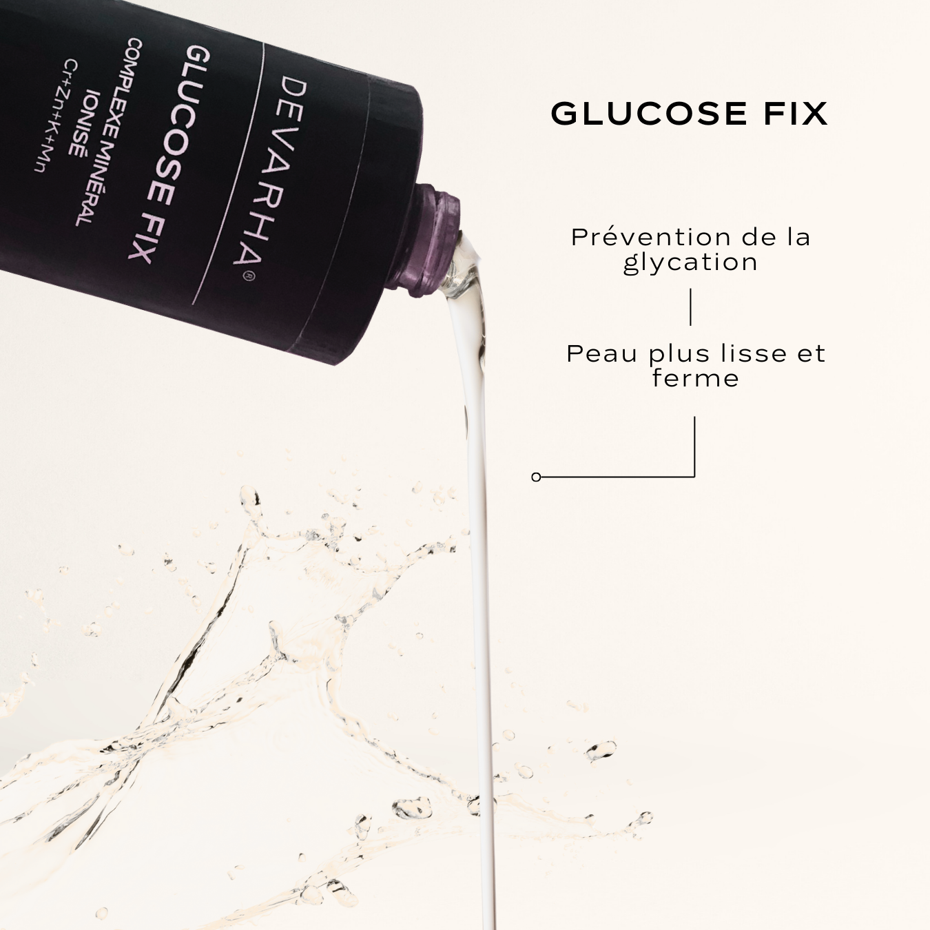 Les minéraux ionisés contenus dans ce complexe – potassium, zinc, chrome et manganèse – soutiennent la régulation glycémique et limitent la glycation des fibres de collagène. Cette action contribue à protéger la structure dermique, pour une peau plus ferme, lisse et résistante, tout en ralentissant les signes visibles du vieillissement cutané.