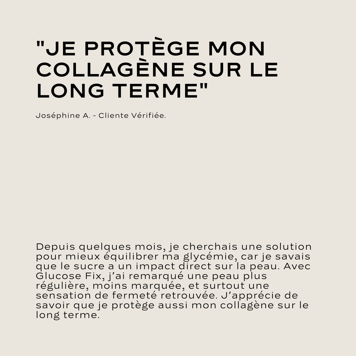 "J’avais souvent des coups de fatigue après les repas et ma peau paraissait terne. En intégrant Glucose Fix dans ma routine, j’ai remarqué une énergie beaucoup plus stable au quotidien. Mais surtout, ma peau est plus lisse, comme si elle avait retrouvé de l’élasticité. C’est rassurant de savoir que je protège aussi mon collagène en agissant sur la glycémie."