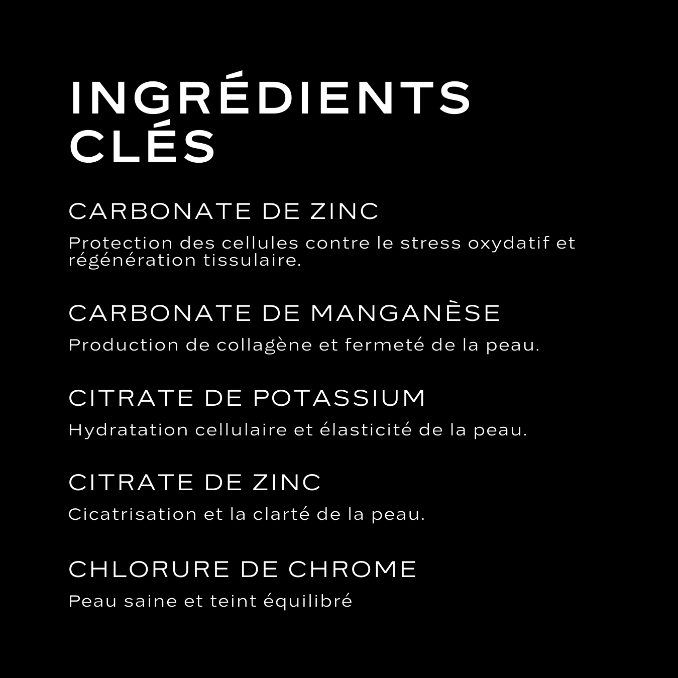 Citrate de potassium, citrate de zinc, chlorure de chrome, carbonate de zinc, carbonate de manganèse.